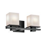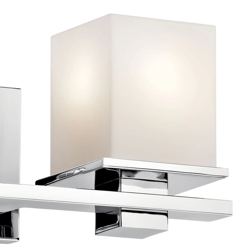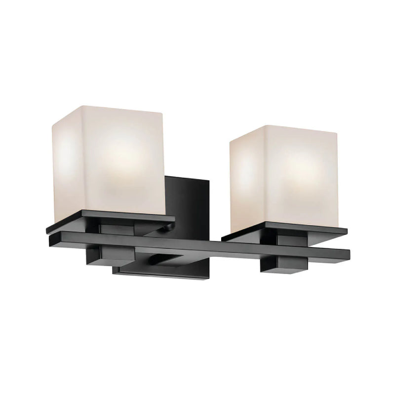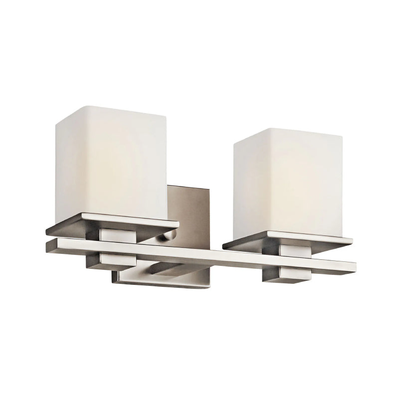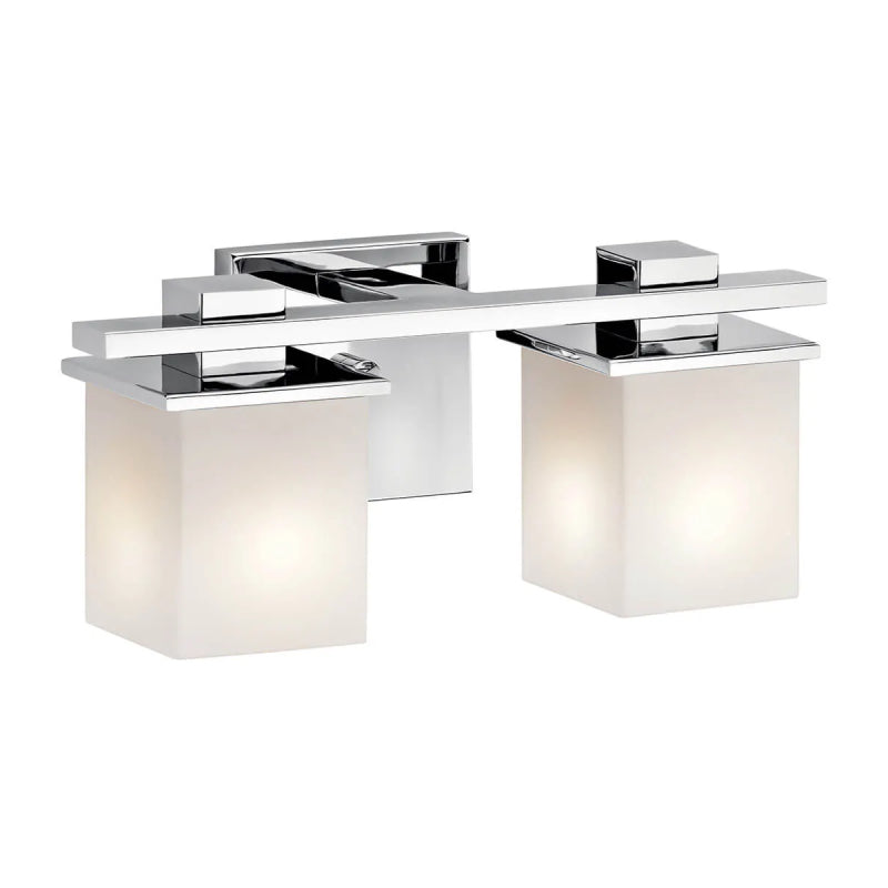 This 2 light bath light from the Tully collection creates a pleasing flow in any bathroom or vanity space. Characterized by clean lines and a simple cubic design, it provides an airy, uncluttered feel with an understated, contemporary flair.