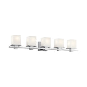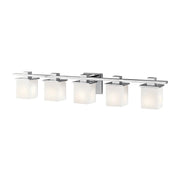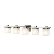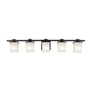 Clean and sleek, the geometric design of the Tully 5-light vanity light is a simple yet sophisticated addition for any soft modern space.