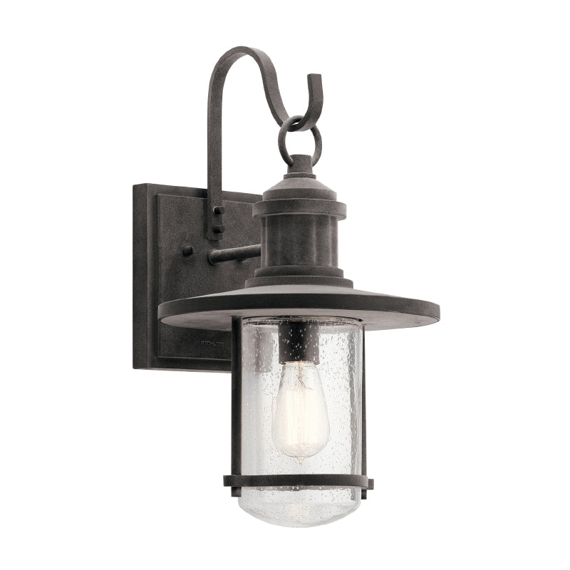 Riverwood's modern take on this vintage-style 19.5" outdoor wall lantern gives outdoor spaces a rustic seaside vibe. Bringing together touches of nautical style and industrial charm.