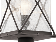 Argyle's outdoor post lantern showcases a lodge-inspired design that brings a distinctive look to your curb-appeal. This fixture features a crisscross pattern, a beautiful Weathered Zinc finish and clear seeded glass. When creating an aesthetic atmosphere, nothing compares to Argyle.