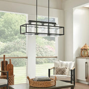 Designed for outdoor living areas, this 3 light outdoor linear chandelier from the Wright collection is equally at home indoors over a kitchen island. The square glass shades, geometric framework and Weathered Zinc finish create a unique and versatile look that pairs well with stonework, solid surface countertops and more.