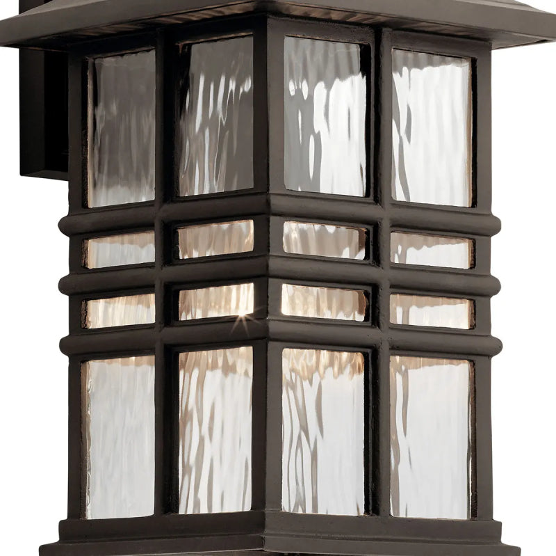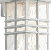Inspired by classic craftsman architecture.Crafted from Kichler's Climates materials, each fixture is designed to withstand harsh outdoor elements, like saltwater spray and UV rays. The clear, hammered glass simulates the look of water, enhancing the overall style, while still letting the light shine through.