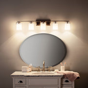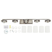 The Hendrik 43" 5 light vanity light features a classic look with its Brushed Nickel finish and satin etched cased opal glass. Inspired by Hendrik Berlage, the Hendrik vanity light works perfect in a bathroom or powder room that has a traditional and modern look.