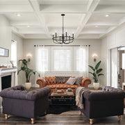 The Capitol Hill 22" 6 light chandelier features basket inspired curved arms that adds dimension and visual interest with these finishes.