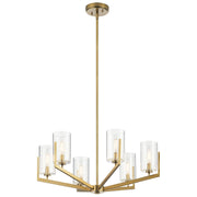 The Nye™ 14.75" 6 light chandelier features a mid century modern design in Finishes and clear glass.