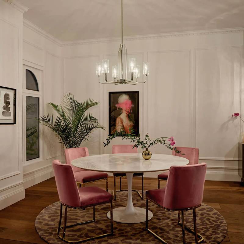 The Kimrose 6 light chandelier is an Art Deco masterpiece.