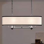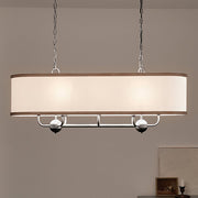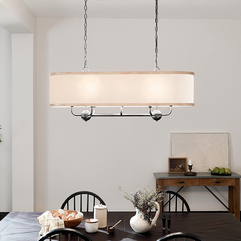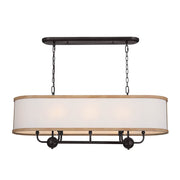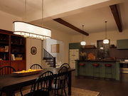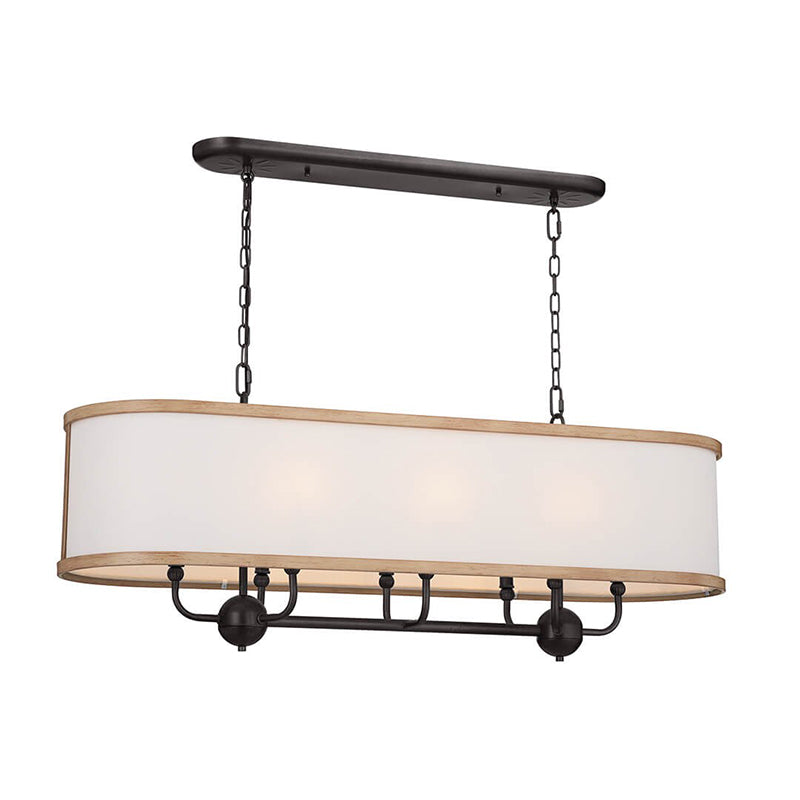 The Heddle 8 light linear chandelier creates a cozy, warm ambiance.