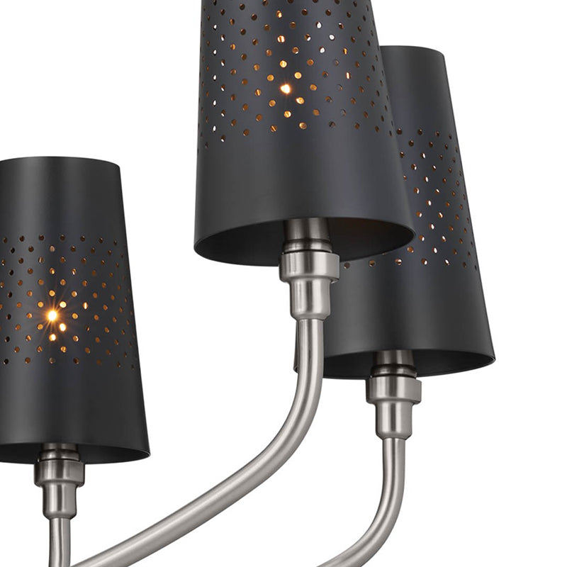 As light delicately escapes Adeena's elegantly perforated, black metal shades, it warms in romantic elegance. Its preassembled black stems are connected by links, giving it a unique detail while allowing you to easily adjust its height. Shades remove for easy cleaning.