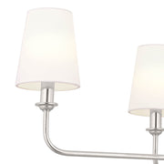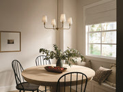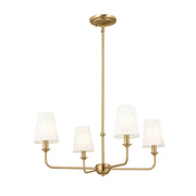 A refined take on the classic chandelier, Pallas in brushed natural brass is delicate with a hint of opulence. Its white linen shades give you ambient illumination while removing them lets you enjoy a classic candelabra. Enjoy customizing it to suit your space.