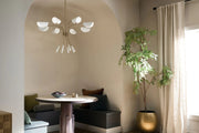 Priam's LED lights illuminate the top and bottom of each of its six arms--giving you the option for downlighting for task focus. Versatile and fun, its finish options exude a simple, clean visual aesthetic of modern design while its larger scale creates a sculptural focal point, ideal for modern minimalist lifestyles.