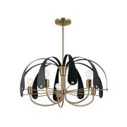 Inspired by a leaf's soft curves, the Petal 5 light chandelier sets the tone for your space. Customize its dual-finished look with the included sets of both black and white straps. In a nod to Art Deco elegance, the center column in champagne bronze is gently ribbed.