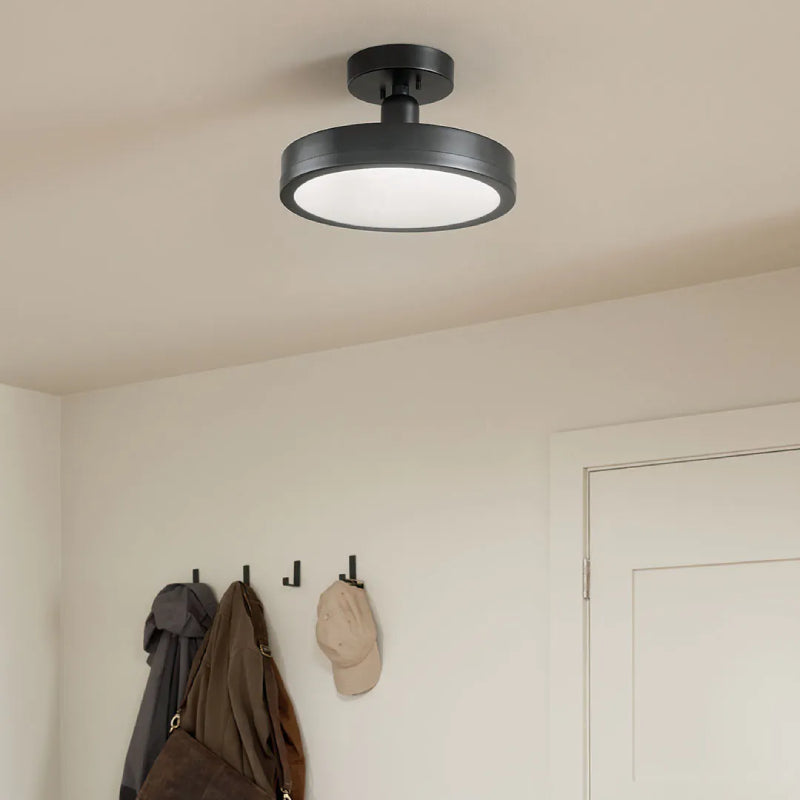 With an integrated LED bulb, the Riu 1 light semi-flush is effortless, energy-saving illumination. Inspired by modern minimalism, its disc and tube forms keep it simple.