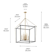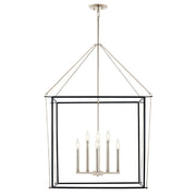 The Eisley foyer pendant's open-framed body design illuminates in a minimalist, modern aesthetic. Its contrasting mixed finish shapes are connected ever-so-slightly with a hook and eye at each corner of the cage. This foyer pendant is constructed without glass, giving the illusion that the fixture is floating.