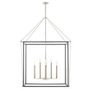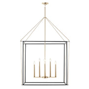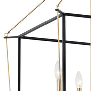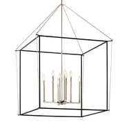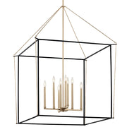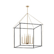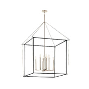 The Eisley 2-tier foyer pendant's open-framed body design illuminates in a minimalist, modern aesthetic. Its contrasting mixed finish shapes are connected ever-so-slightly with a hook and eye at each corner of the cage. This foyer pendant is constructed without glass, giving the illusion that the fixture is floating.