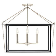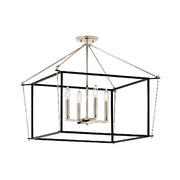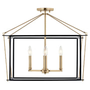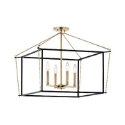 The Eisley semi flush mount's open-framed body design illuminates in a minimalist, modern aesthetic. Its contrasting mixed finish shapes are connected ever-so-slightly with a hook and eye at each corner of the cage. This foyer pendant is constructed without glass, giving the illusion that the fixture is floating.
