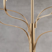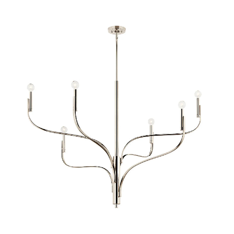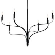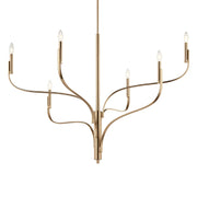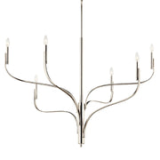 Inspired by the organic nature of branching plant formations, the Livadia chandelier breathes new life into the traditional. Its sculptural silhouette spirals upward, while its candlesticks pop at the top like budding flowers. Each arm reunites at the center column, resting on the body and creating a layered effect. This subtle asymmetric design dynamically changes as you move throughout the room, giving you and your guests a different perspective, no matter the location.