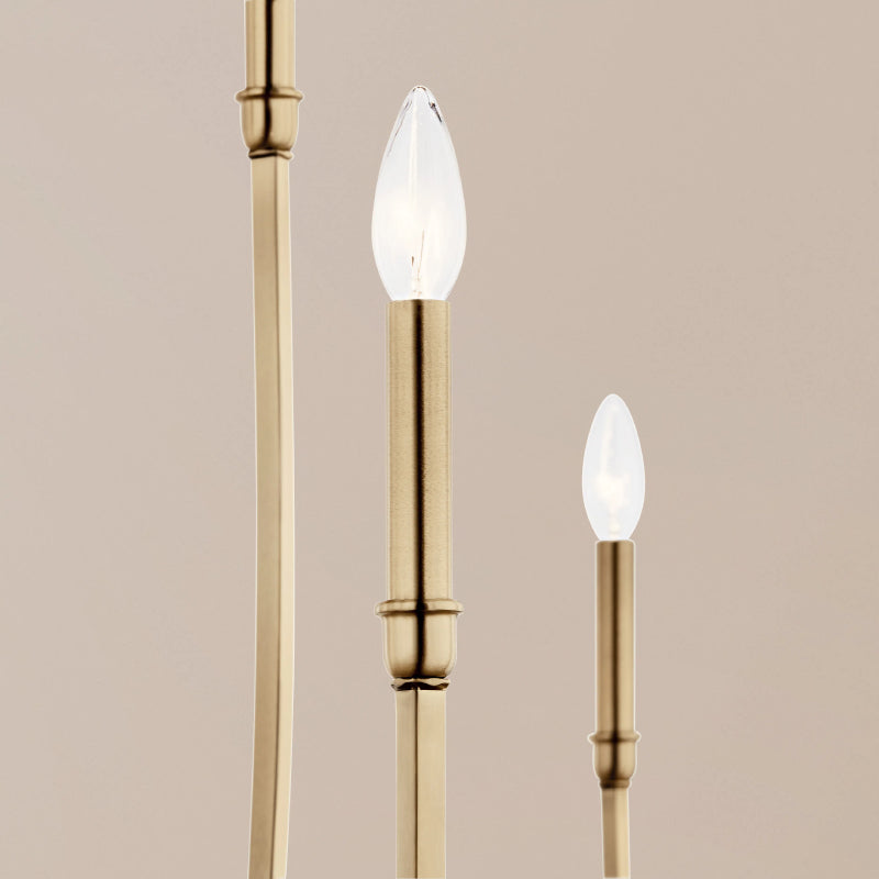 The Malene foyer chandelier is inspired by the graceful movement of rippling water—gentle, flowing, and captivating. These characteristics come to life in its soft, sweeping arms and elegant, stacked details.