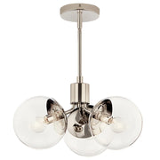 Inspired by frozen grapes, the Silvarious convertible pendant will capture the hearts of family and friends. Gathered at the center, its arms branch out with sparkling globes at the end, for a simple, yet playful design. As a semi-flush, the glass will deliver a beautiful light effect on the ceiling and walls.