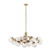 Inspired by frozen grapes, the Silvarious linear convertible chandelier will capture the hearts of family and friends. Gathered at the center, its arms branch out with sparkling globes at the end, for a simple, yet playful design.