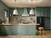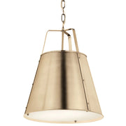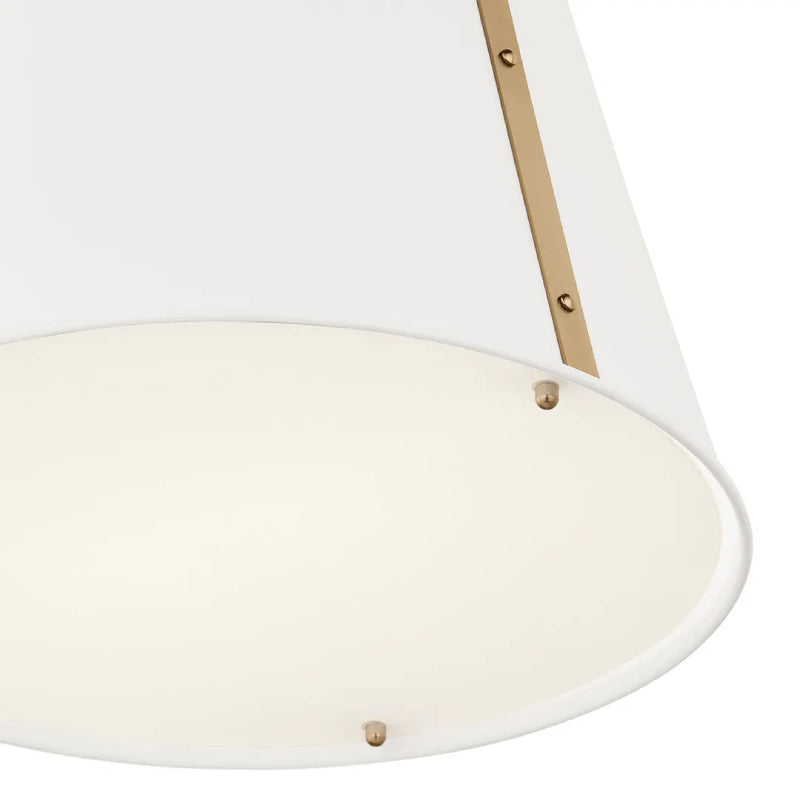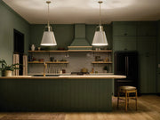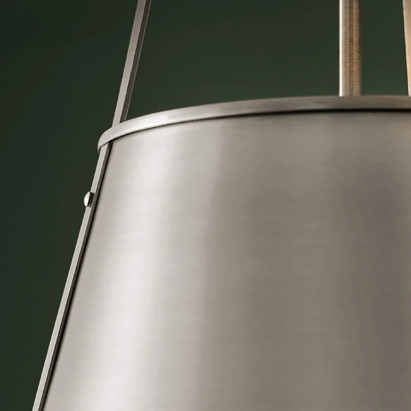 The Etcher pendant is reminiscent of a champagne bucket design with its elongated, tapered silhouette and smooth exterior. Its custom square chain design and riveted details on the top, bottom and side of the fixture offer a classic, updated traditional style. Included with the fixture is an etched glass diffuser to ensure maximum illumination without glare.