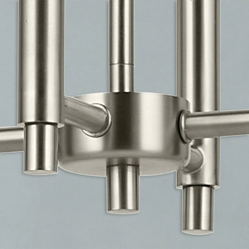 The simple form, soft curves, linear stacking details, and clean silhouette of the Madden light foyer pendant in brushed nickel allow it to easily mingle with a variety of styles while its exposed bulbs let you customize the look. For a more modern aesthetic, consider a clear or white globe bulb. For a more classic take, consider a candelabra or tube bulb.