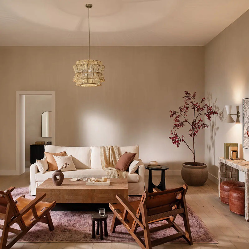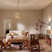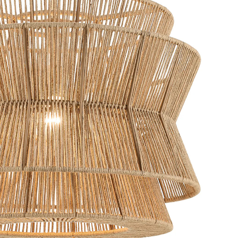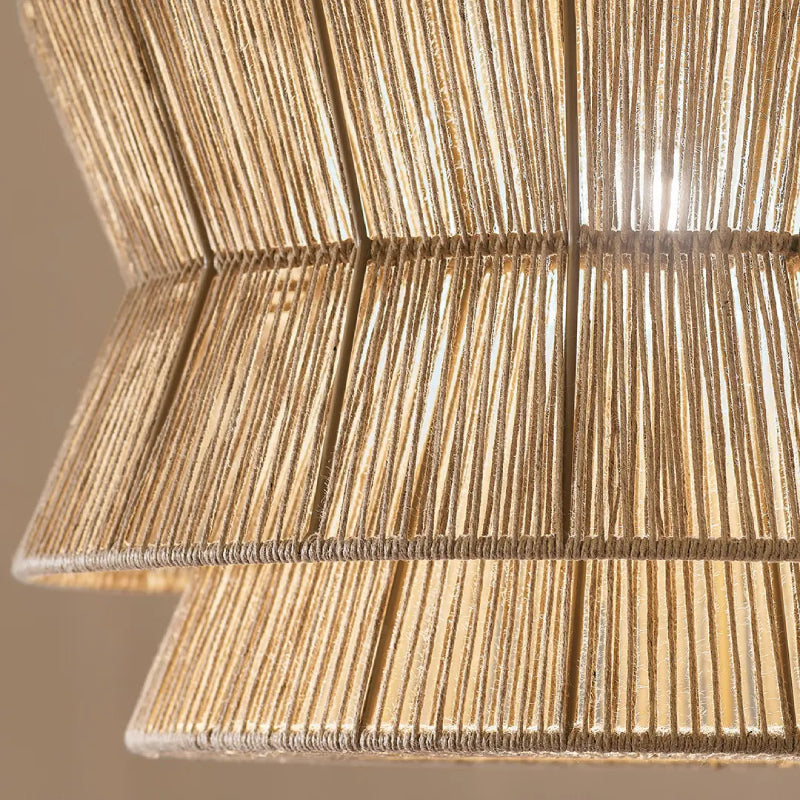 The Ophira pendant light is inspired elegance and organic beauty. Layers of natural jute, stacked and complemented by our warm Champagne Bronze finish, create an eye-catching fixture.