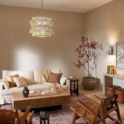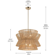 The Ophira 4 light pendant light is inspired elegance and organic beauty. Layers of natural jute, stacked and complemented by our warm Champagne Bronze finish, create an eye-catching fixture.