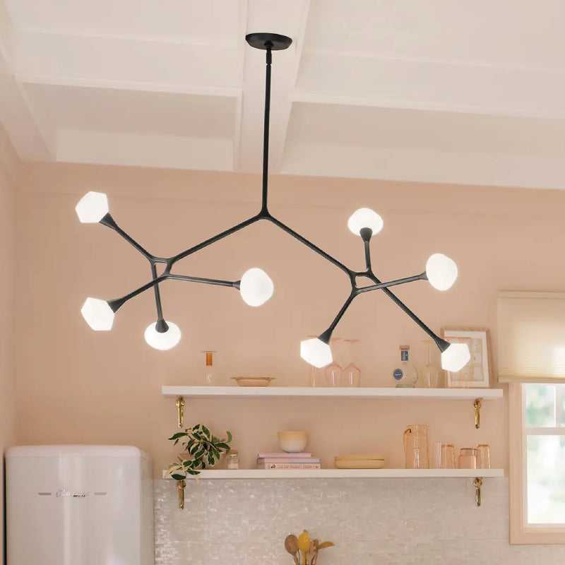 The Cassius convertible chandelier creates a celestial-inspired focal point that complements your modern look. When installing it, rotate its arms to customize it to your space.