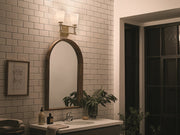 The Rosalind 2 light vanity light in brushed natural brass is true refinement. Satin etched cased opal glass and glamorous crystal candle sleeves give you the perfect bathroom glow. Mounted upright, Rosalind seamlessly blends with your modern or updated traditional decor.
