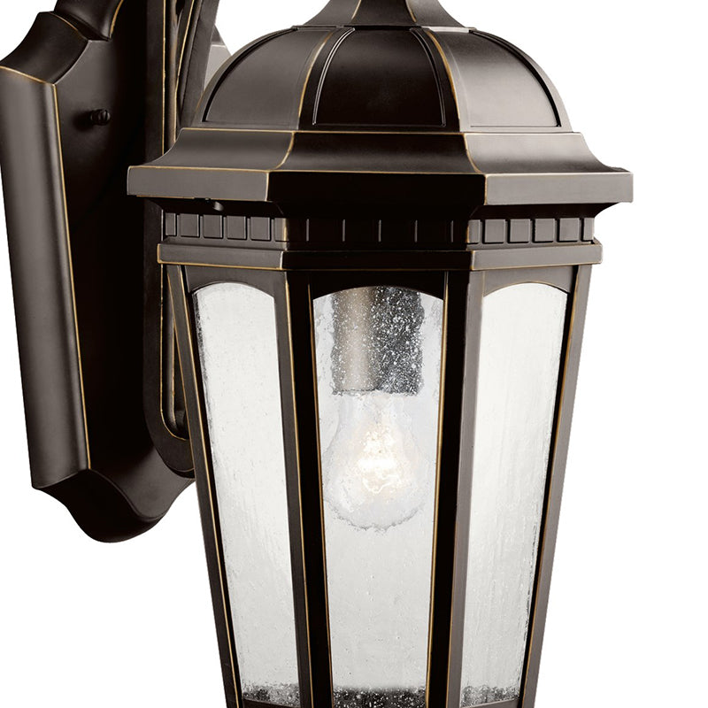 Uncluttered and traditional, this attractive wall lantern from the Courtyard collection adds the warmth of a secluded terrace to any patio or porch. What a welcoming beacon for your home's exterior.