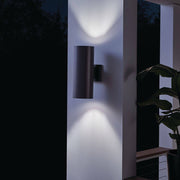This 2-light wall cylinder features a unique two light design in Black finish and Architectural Bronze finish that shoots light both up and down your walls.