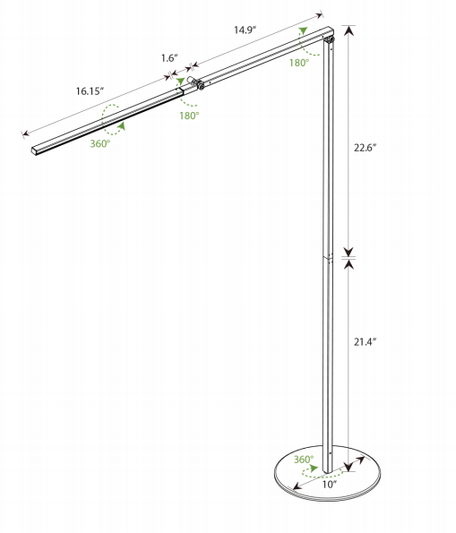 Z-Bar Floor is an ultra-thin and flexible floor lamp that fits any room and décor. Need ambient light? Turn the LED head to the ceiling. Need reading light? Pull the LED head down to sofa or chair level. Need no light at all? Fold the LED head against the body and you have a slim, sculpture-looking bar.