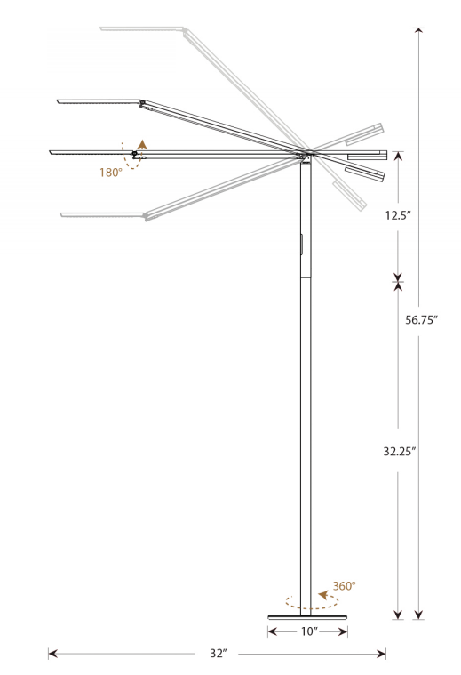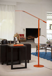 All of the exceptional styling of the Equo LED Desk Lamp in a beautiful floor lamp. The same willowy sculpture has been extended into an LED floor lamp that has the same unique counterweight design. The LED head tilts and will maintain the angle you need while the floating arm balances delicately on the long floor lamp stand. A weighted base keeps the lamp stable and fixed.