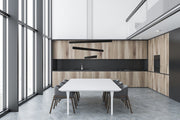 The Sub Pendant boasts a minimalist profile and emits a soft, warm glow. A continuous line of LED light wraps around the entire piece, allowing this pendant to function as both a task light for worksurfaces and ambient light for ceilings.