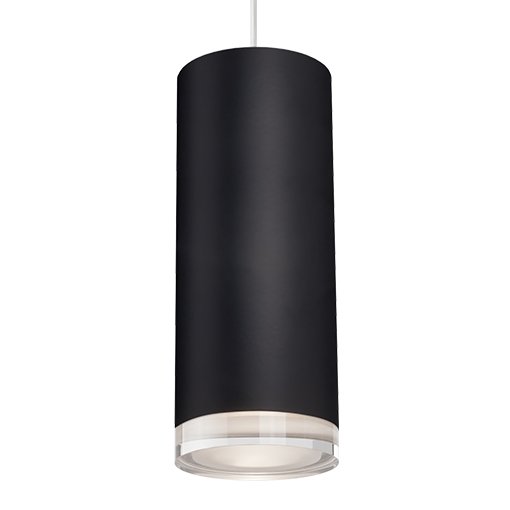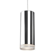 Single LED cylinder shaped pendant with clear crystal disc.