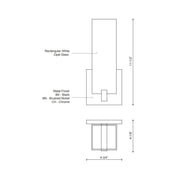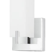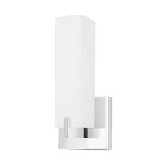 Single lamp LED wall sconce with square shaped white opal glass, metal details.