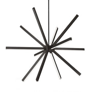Sirius’ array of elements emanate from a single point in a starburst of light. A visual statement that draws the eye as the burnished finish interplays with the light, revealing shifting highlights and shadows. Contemporary and decorative.