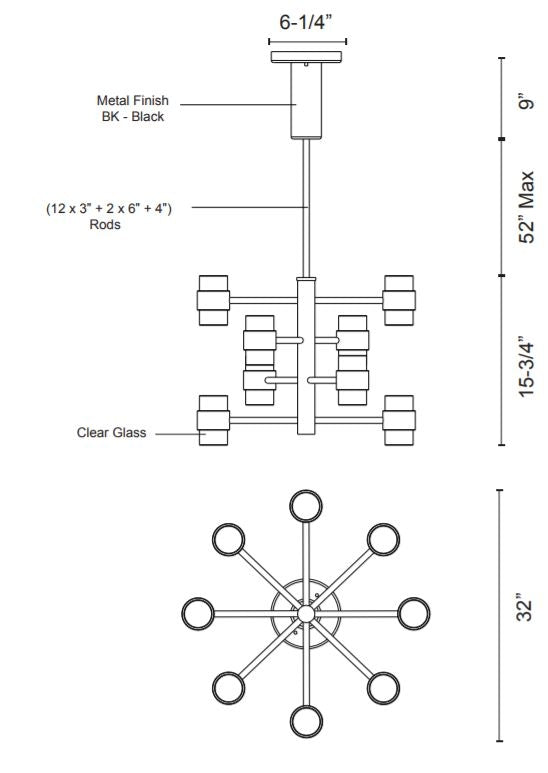 - Rod Length: 52" Max (3×12" + 2×6" + 1×4")