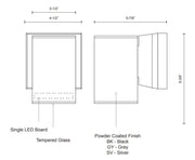 Concealed inside is our 120V AC LED technology with a tempered glass diffuser radiating light either upward or downward depending how it is mounted on the wall, 12W, 3000K with 780* delivered lumens. Certified ETL wet location listed and is available in different sizes and two light options.