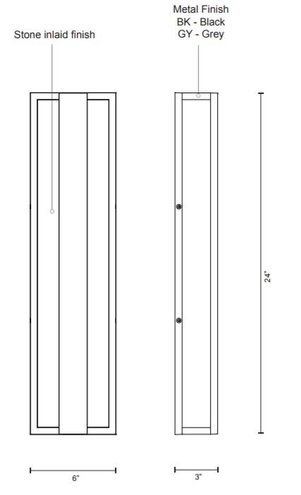 Stone elements and metal join together, resulting in masculine elegance. This exterior wall light consists of a 24 inch long metal rectangle with a stone inlay that is flush against the mounting plane, then another slim metal rectangle is suspended just atop of it. LED glow flows from the concealed inner surface. Caspian can be dimmed and is suitable for exterior use.