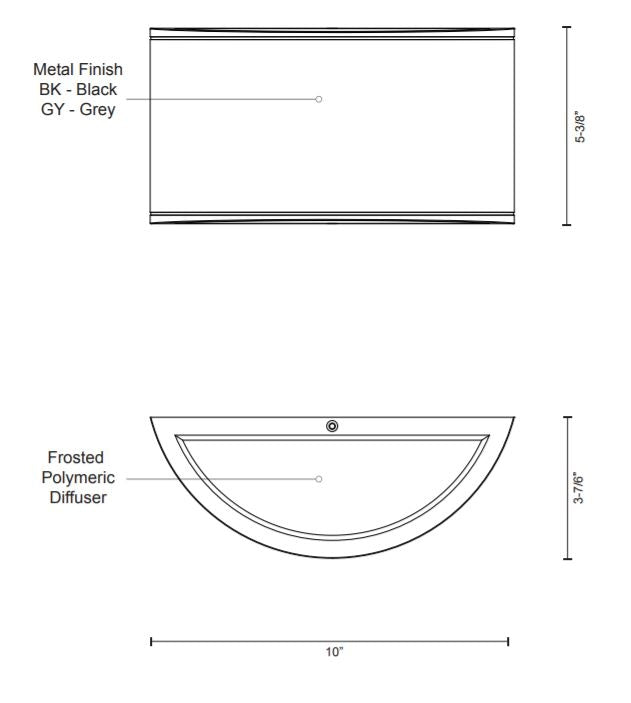 What appears to be a rectangle when looking head on, this exterior wall light is actually a half-circle shape when viewed from all other angles. Made from extruded and die cast Aluminum, in a black or grey powder coat finish, it also has a polymeric diffuser covering the LED light source for even light distribution.