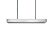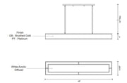 The black or white organza shade that covers the aluminum chassis gives depth and structure to this rectangular shaped pendant lamp. The long edge of the rectangular lamp shade measures 48 inches and is attached to the ceiling with two solid stems and a canopy. The dimmable LEDs are perfectly diffused with a white acrylic panel always a glow never a glare.