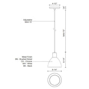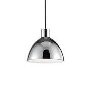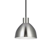 Single LED pendant with a heavy plated metal dome shaped shade available in brushed nickel, chrome, black or white.