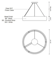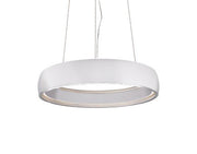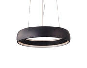 Aircraft cable suspended circular pendant with circular canopy. Soft up/down light is emitted from LED arrays and diffuser concealed within the ring - a design which seems to almost hover within your space. A gentle curve to the disk's external surface adds to the minimal appearance of the design.