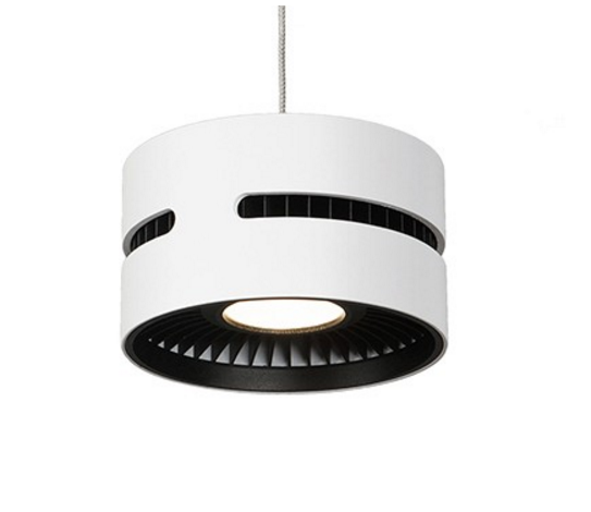 Single LED pendant with heavy gauged cast aluminum outer casting, visible black heatsink from two decorative openings around the outer casing and from the bottom of the pendant.