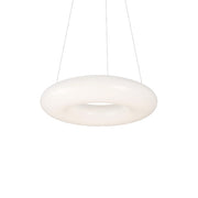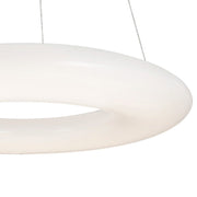 A radiant torus of bright, even illumination. Available in a variety of sizes and as either a pendant or flush mount, these halos of light adapt to any setting. Eternal and substantial.
