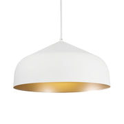 The smooth spun metal shade is available in graphite or white for this modern pendant but add your choice of one of the four interior lamp shade colors and the possibilities are endless. Suspended by a matching braided fabric cord the Helena exudes effortless elegance. The acorn-shaped lamp shade measures 16-7/8 inches in diameter. Hang this pendant solo or in multiples for a more dramatic look.
