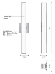 Single LED wall sconce with rectangular shaped white opal glass.