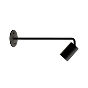 Cylindrical lamp head with recessed bulb socket. Circular attachment plate with right-angle stem. Powder-coat finish.