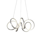 A looping radiant line casts light across space in a continuous helical path. The Synergy series is characterized by the rolled rectangular extrusion, which emits soft light through the silicon opal lens. Configured in both linear and ring arrangements, the arcing aluminum allows the curated finishes to be visible at every angle.